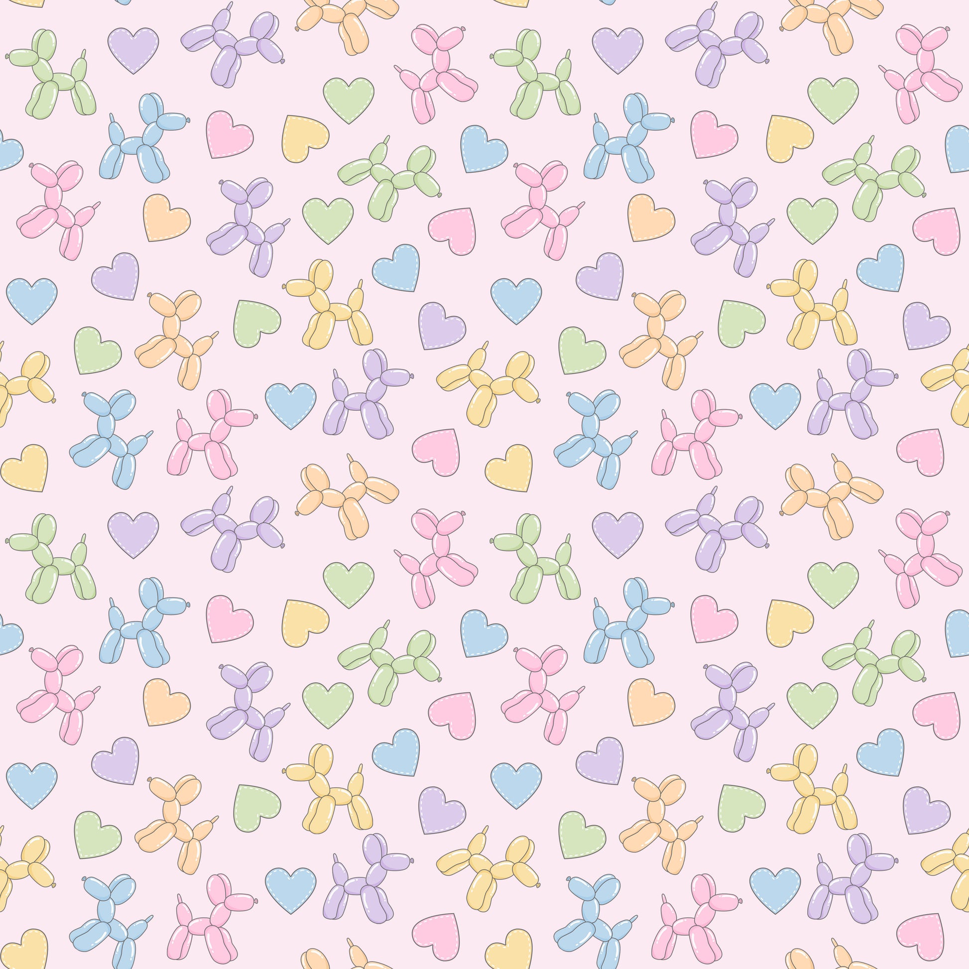 Cute, charming and ideal for girly collections — Pastel Balloon Dog Hearts features pastel balloon dogs paired with soft stitched hearts on a blush background. It’s a gentle, playful design that suits both kids and aesthetic pastel lovers.
